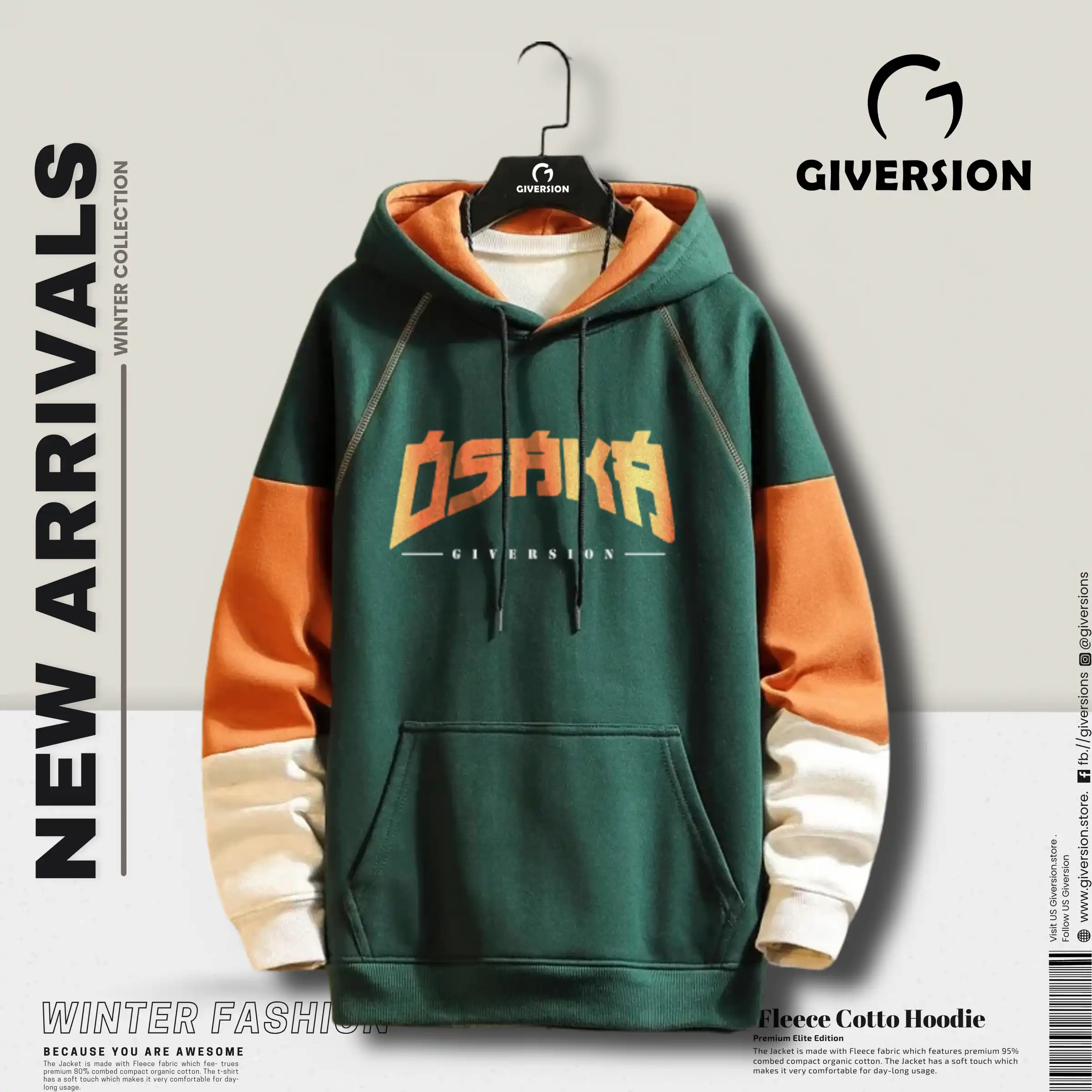Be the first to review “Buy Stylish Giversion Print Pull Over Hoodie for Men | Green”