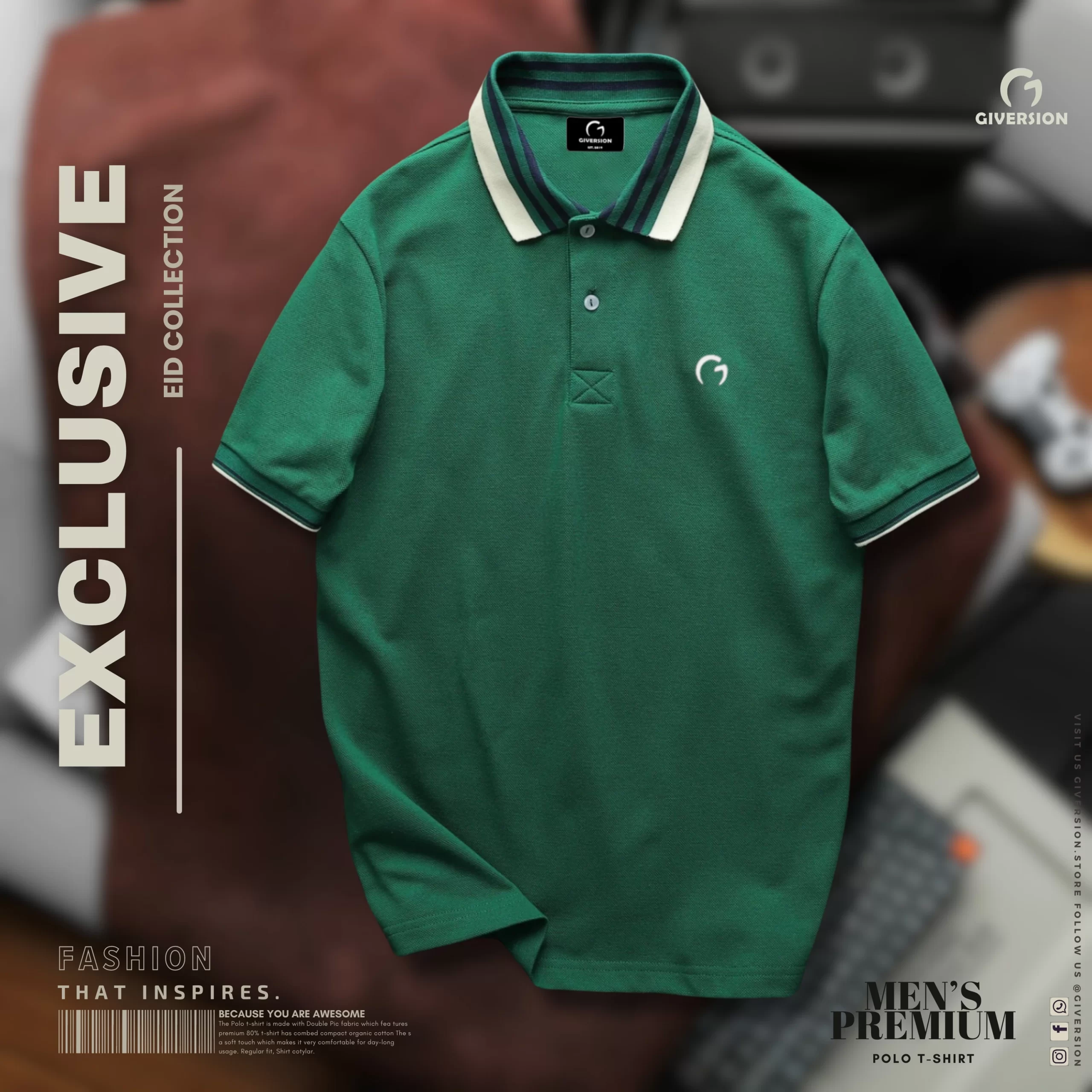 Premium Designer Edition Raglan Double PK Cotton Polo – Green | Giversion